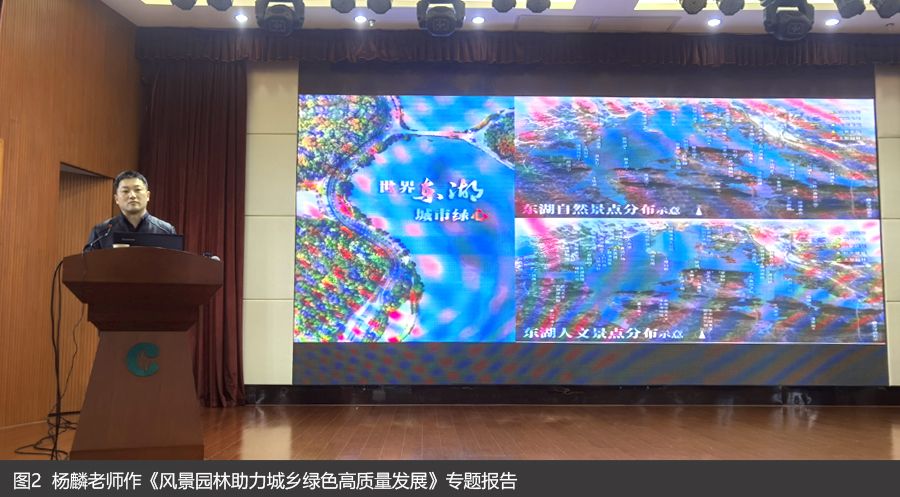 杨麟老师以武汉东湖、襄阳鱼梁洲、宜昌三峡库岸等实践项目为切入点,作题为《风景园林助力城乡绿色高质量发展》的报告。他提出,坚持“生态优先、绿色发展”的核心理念,通过科学绿化、风景营造与管护运营,从自然资源管护、历史风貌传承、人居环境改善、产业活力引导等方面,厚植高品质生态环境的绿色底色,促进城乡融合高质量发展。