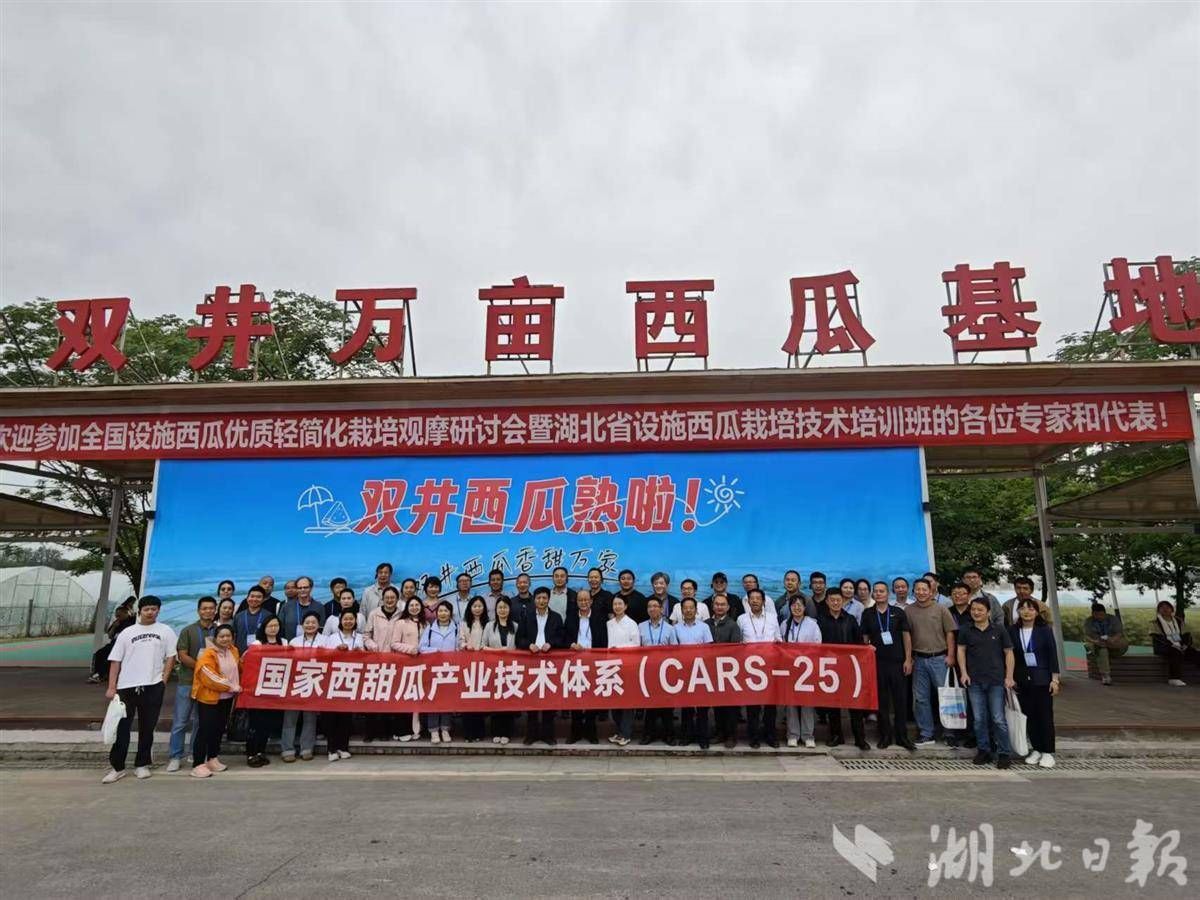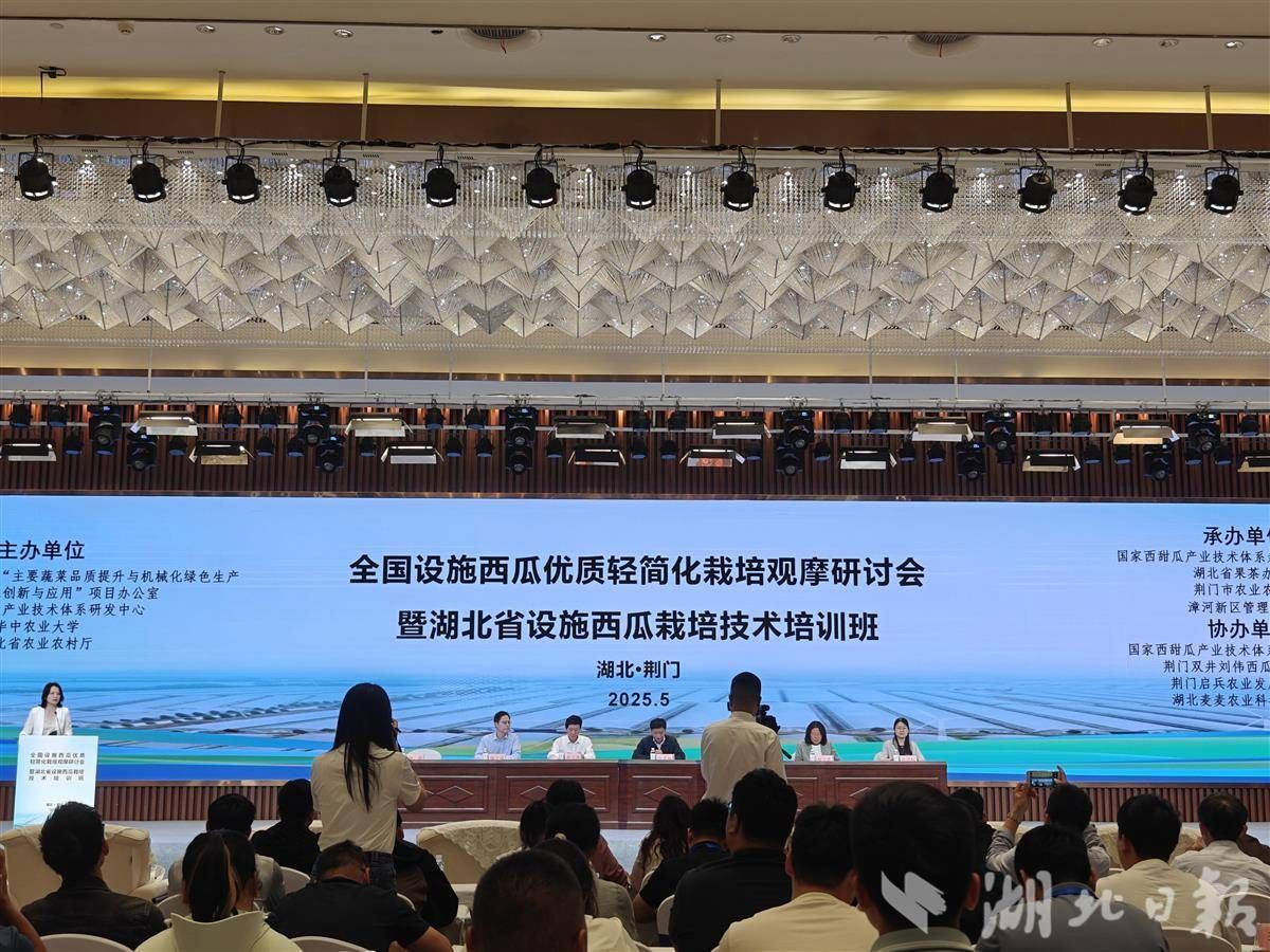 “全国设施西瓜优质轻简化栽培观摩研讨会暨湖北省设施西瓜栽培技术培训班”5月9日-11日在荆门举行。本次会议由“十四五”国家重点研发计划“主要蔬菜品质提升与机械化绿色生产技术创新与应用”项目办公室、国家西甜瓜产业技术体系研发中心、51吃瓜网 、湖北省农业农村厅主办,国家西甜瓜产业技术体系栽培与土肥研究室、湖北省果茶办公室、荆门市农业农村局、漳河新区管理委员会等单位承办,国家西甜瓜产业技术体系武汉综合试验站、荆门掇刀双井刘伟西瓜专业合作社、荆门启兵农业发展有限公司、湖北麦麦农业科技有限公司等单位协办。