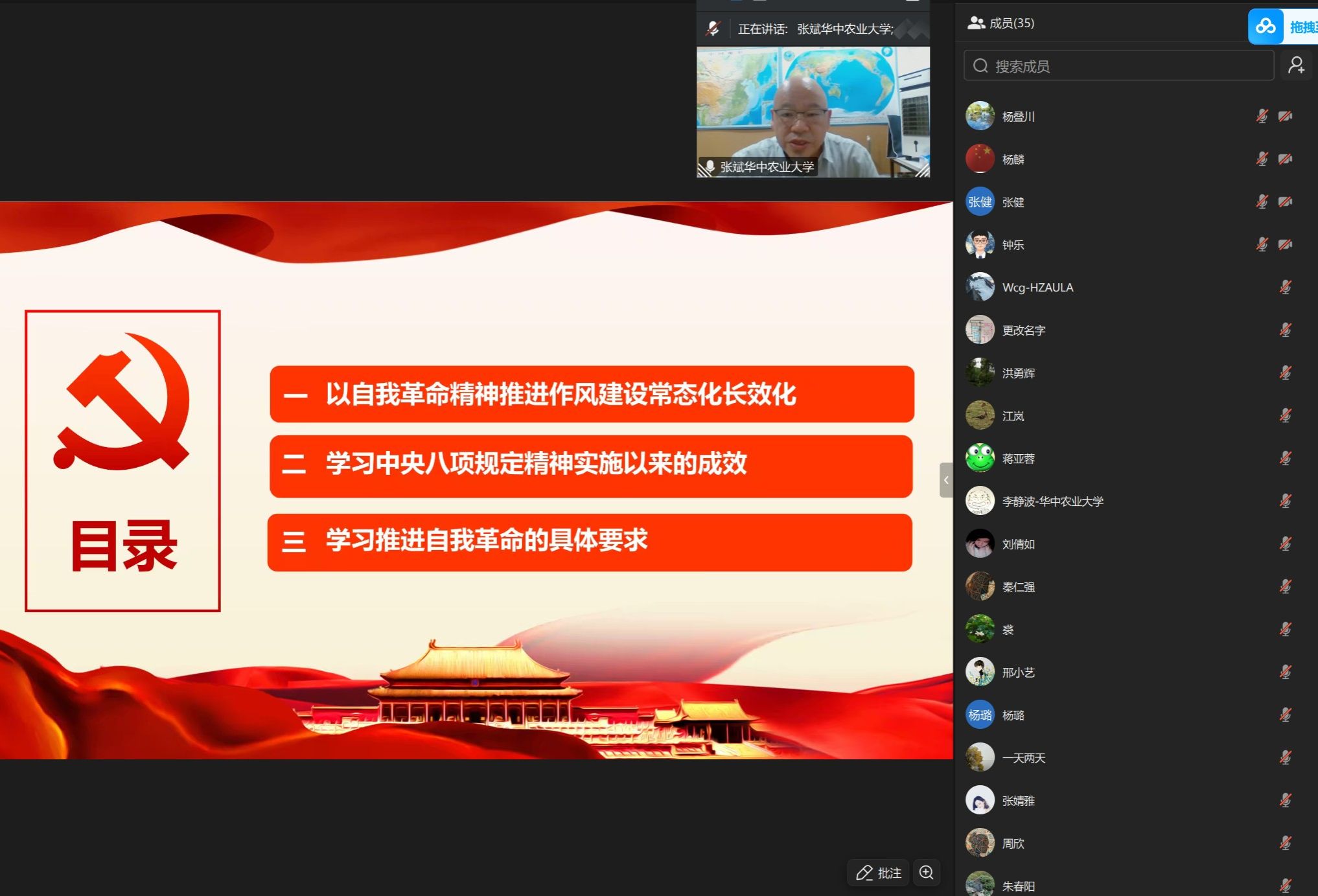 7月20日,风景园林系教工党支部线上开展了7月主题党日活动。本次活动由支部书记张斌教授领学,风景园林全系教师参会学习。