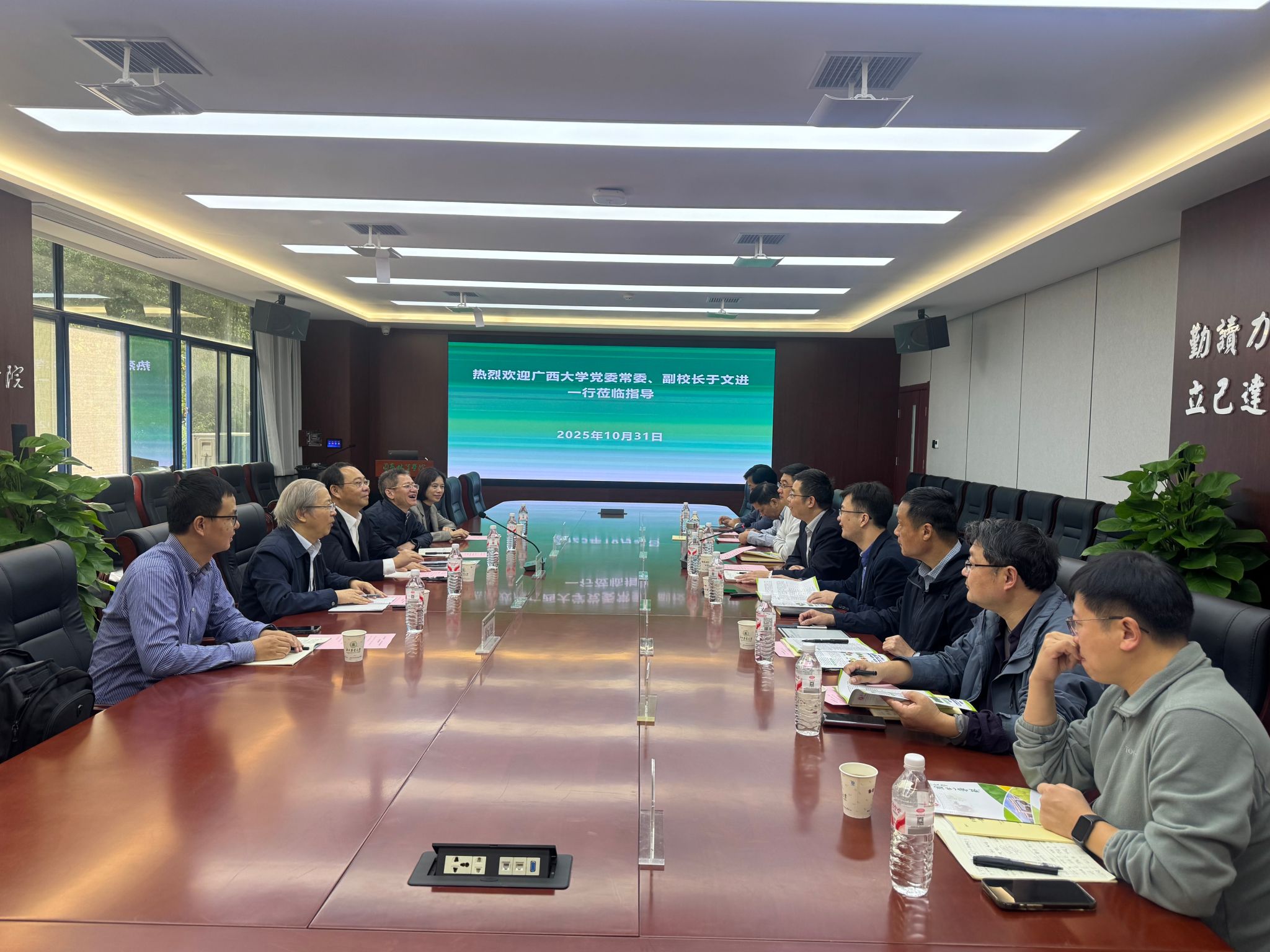 10月31日,广西大学党委常委、副校长于文进一行来院调研交流。学院党委书记龙健飞、院长徐强热情接待了于文进一行并举行座谈交流。