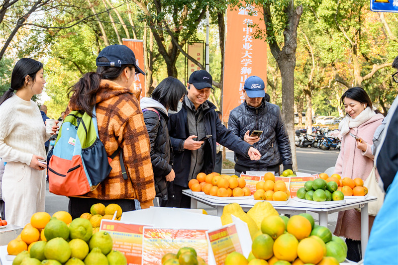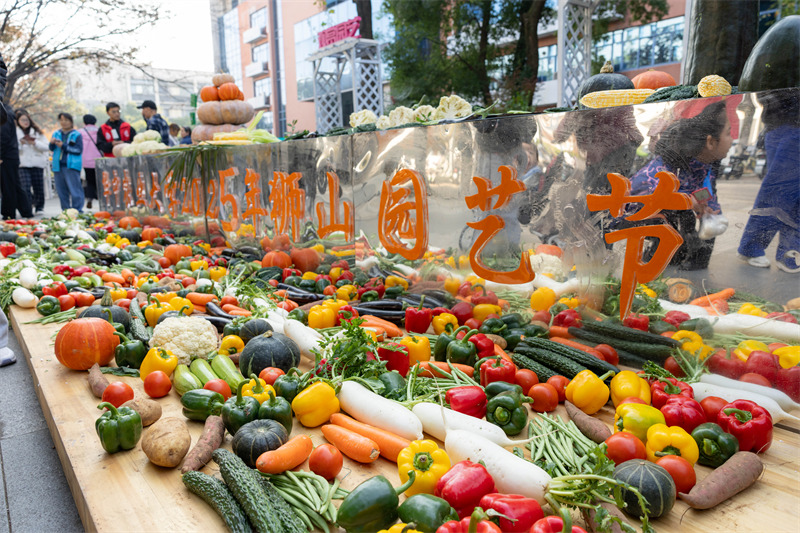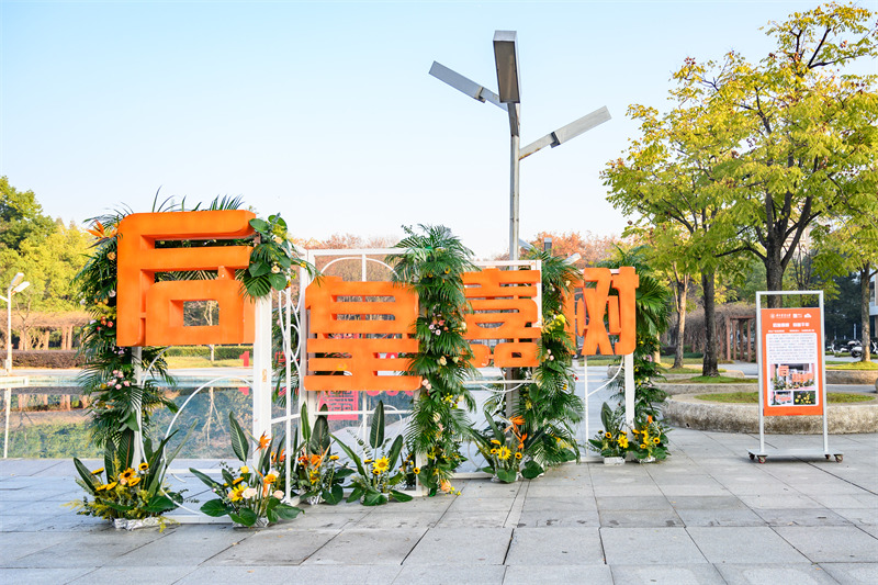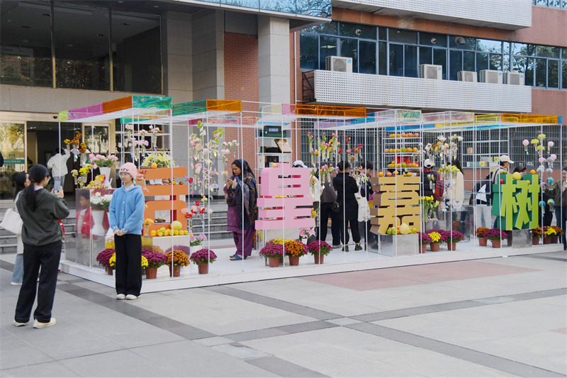 活动现场,艺术装置也引人注目。园林北楼前,一个由HZAU字体抽象演化而成的“生命格栅”艺术造型吸睛。格栅之内,柑橘、马铃薯、番茄、中药材等多样园艺作物,与学校自主培育的月季、百合、郁金香、孔雀草、菊花等特色花卉巧妙搭配,相映成趣。狮子山广场上,花艺装置“后皇嘉树”成为大家拍照“打卡”的地标。