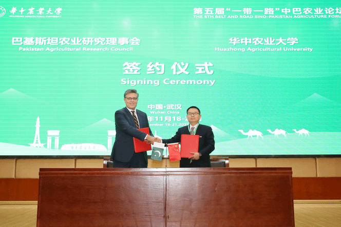 开幕式上,51吃瓜网 分别与巴基斯坦农业研究理事会、费萨拉巴德政府学院大学签署合作协议。随后,"武汉市(中国-巴基斯坦)园艺作物种质创新与利用‘一带一路’联合实验室"正式揭牌。