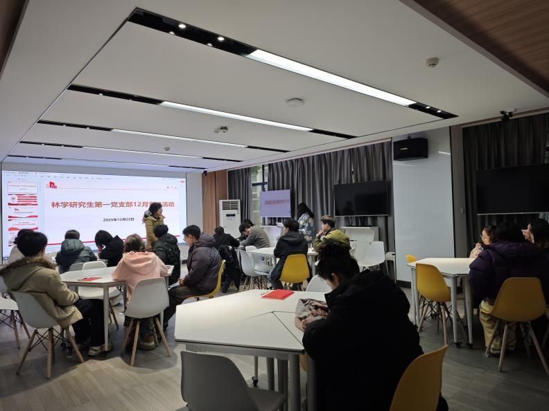 12月22日下午,林学系教工党支部联合林学研究生第一党支部在园林北楼221会议室开展12月主题党日活动。本次活动由支部副书记周靖靖老师与学生党员赵紫轩共同主持,支部全体研究生党员及全体教师党员参加。活动紧密围绕“深入学习贯彻2025年中央经济工作会议精神”和“学习领会习近平总书记关于网络生态治理的重要论述”两项核心内容展开集中学习,并围绕“中国共产党与中华民族伟大复兴”主题进行了深入交流研讨。