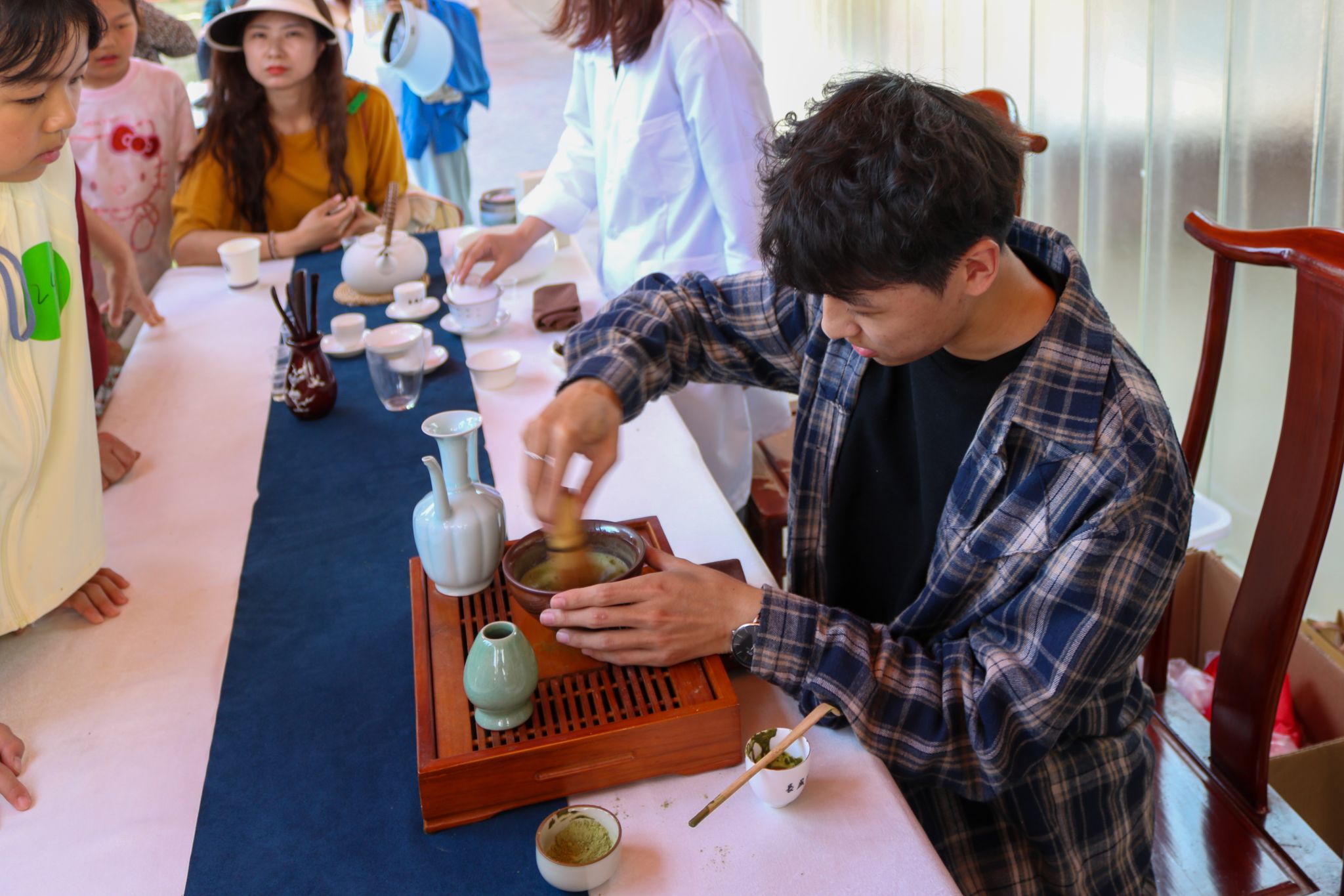 在制茶体验的同时,表演区同步开展了盖碗茶艺表演和点茶表演。茶学专业的同学们以娴熟的动作、优雅的姿态,展示了传统茶艺的精髓。参与者一边品饮着现泡的佳茗,一边欣赏着精彩的茶艺演绎,在氤氲茶香中沉浸于宁静悠远的茶文化氛围。