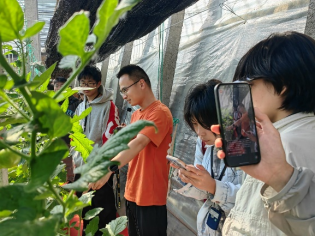 4月20日下午,抵达寿光的师生一行先后走进楚为生物、一亩园农业、沃尔福斯展示棚,探访番茄产业发展密码。在楚为生物,同学们近距离接触各类适配不同产区的番茄品种,深入理解“为一方水土育一类好品种”的育种理念,了解到吉诺比利、华樱1801等品种的适配特点,真切感受农业“芯片”的魅力。在一亩园农业,多彩番茄令人目不暇接,同学们观摩了番茄收购分级、精品分装的全过程,体会到“优中选优”的供应链逻辑。在沃尔福斯基地,师生们参观了番茄、辣椒温室种植区,了解企业产学研融合模式,感受到新农人投身农业的热情。同学们表示,首日便完整见证了番茄从种质创新到市场流通的全过程,将切实把所学所悟转化为专业学习的动力。