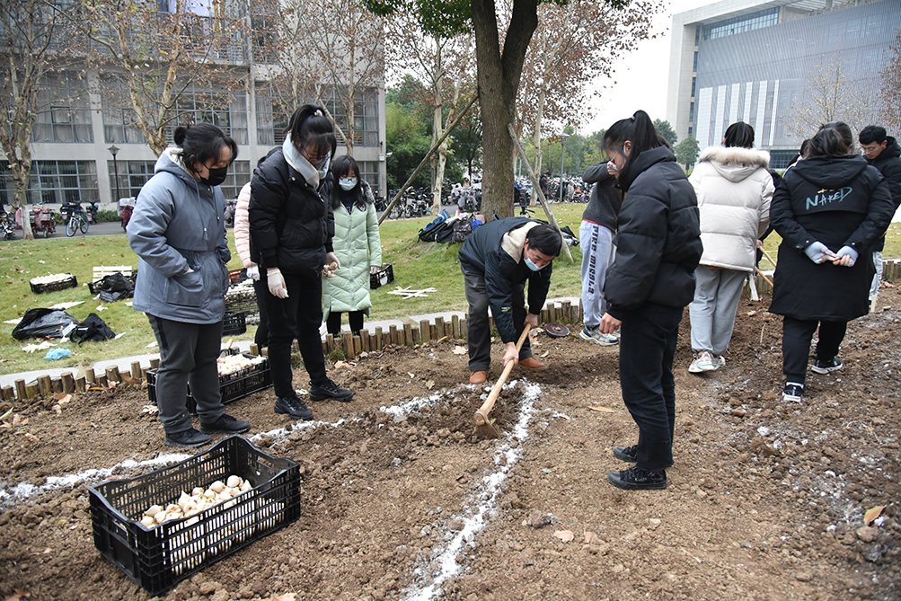 园林系产祝龙老师、何燕红老师指导学生们怎么处理郁金香种球