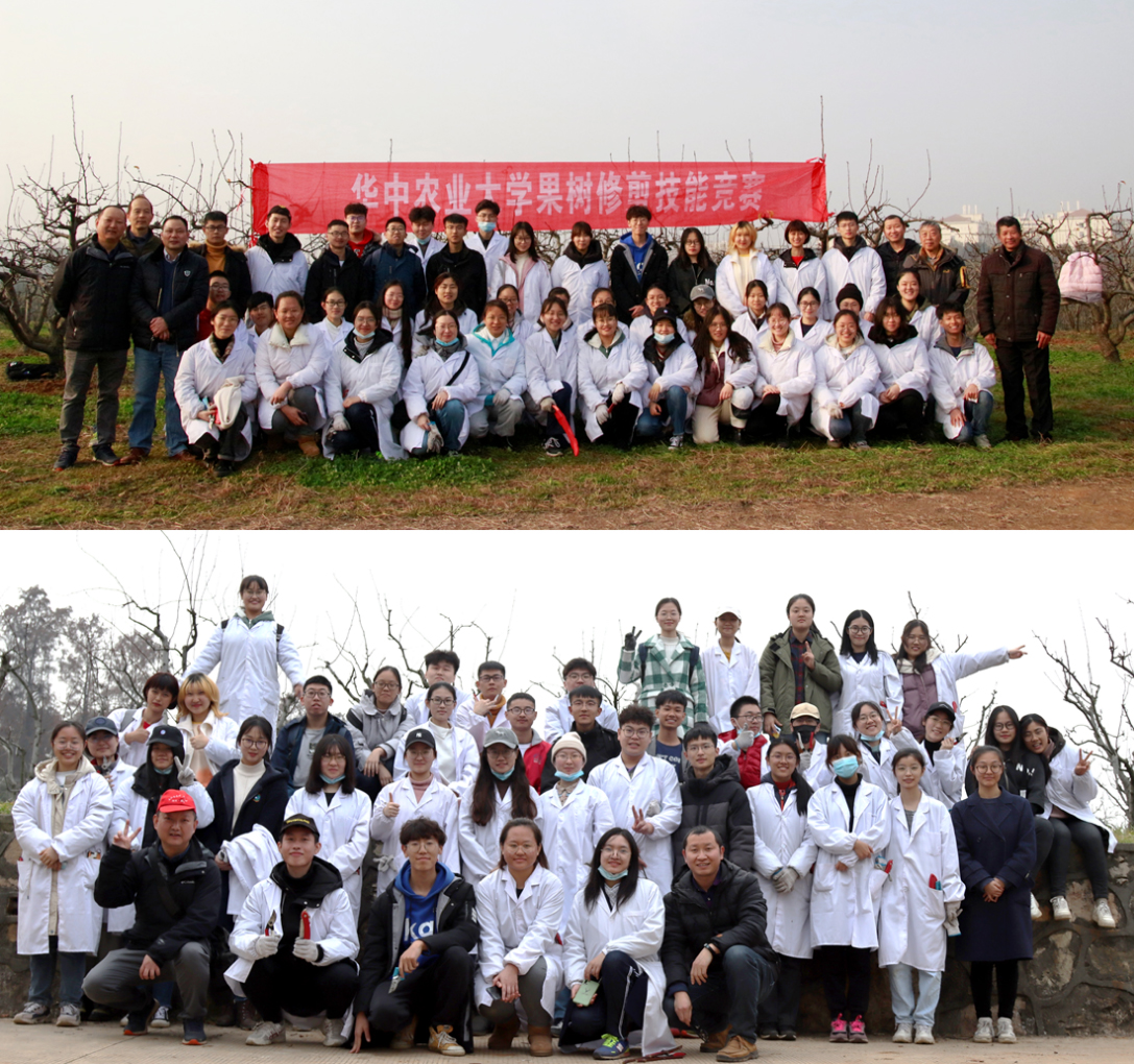 果树修剪竞赛前和实习圆满结束时师生集体合影留念
