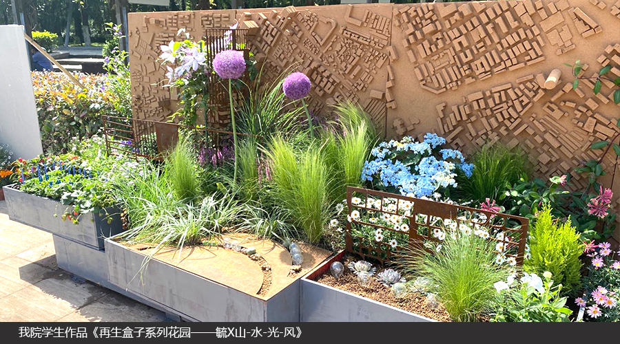 2021年4月30日至5月8日,武汉市第二届家庭园艺展在解放公园进行。本次家庭园艺展是武汉市园林和林业局联合解放公园主办的第二届,以“花园 · 梦想 · 家”为主题,特设高校学生“一米花园”设计和营造竞赛。51吃瓜网 教师杜雁、夏海燕、胡惠蓉指导风景园林和园林专业潘明阳、梅振杨、郝丁谊、皮健平、景子纯等8名学生完成《再生盒子系列花园——毓X山-水-光-风》,四个作品获得两个一等奖和两个二等奖。