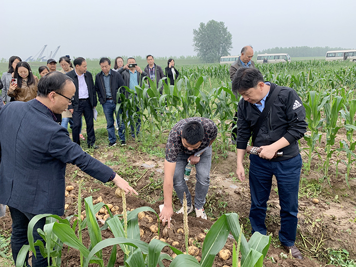 与会人员参观了市农技中心在枝江市百里洲镇八角亭村、顾家店镇仁和垸村举办的“马铃薯-甘薯连作全程机械化生产”、“马铃薯-大豆-萝卜连作全程机械化高效生产”、“马铃薯-玉米-大豆间作高效机械化生产”等技术模式示范现场。观摩了马铃薯机械采收、大豆机械直播、甘薯机械起垄、农膜机械回收等农业机械化操作演示。湖北省马铃薯产业技术体系还组织专家对示范区的中薯5号和华渝5号两个马铃薯品种进行了现场测产,3个示范区亩产分别达到2370公斤、2464公斤、3163公斤。专家表示今年春季连绵阴雨气象条件下,能达到较高产量,技术措施非常到位,“机械化”功不可没,经验值得推广。