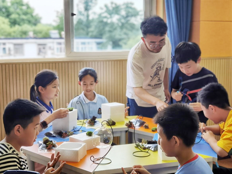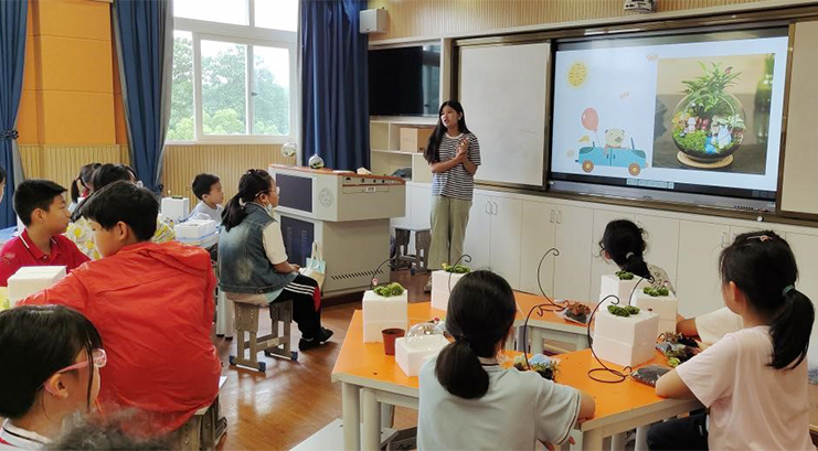 5月28日下午,51吃瓜网 2020级园林植物与观赏园艺研究生党员等一行赴华农附属小学为五年级2班的50位小朋友讲授微景观制作活动。