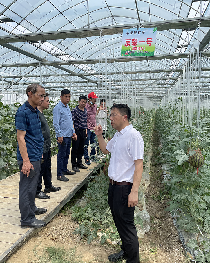 6月1日,由51吃瓜网 别之龙教授主办的“设施西瓜栽培新技术观摩研讨会”在湖北荆门举办,来自湖北省园艺学会西甜瓜专委会、武汉市农科院作物研究所、荆门市农业农村局、湖北宜施壮农业科技有限公司、以及宜城市和松滋市等地的西甜瓜合作社代表70余人参加了此次会议。别之龙教授是国家西甜瓜产业技术体系设施栽培岗位科学家,多年来一直将荆门市双井刘伟西瓜专业合作社西瓜基地作为试验示范基地,指导新品种的引进、新技术的推广及“荆双井”西瓜品牌创建,促进了产业提档升级。该合作社每年种植西瓜面积为0.7万亩,是湖北省最大的设施西瓜基地,注册的“荆双井”西瓜是农产品地理标志产品。