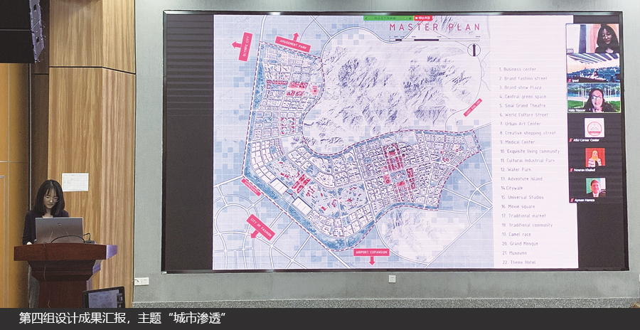 2021年6月11日上午,“2021中美埃联合设计工作坊课程”在景园楼顺利开展课程答辩。本次设计场地由埃及艾因沙姆森大学提供,基址位于埃及红海沿岸著名的旅游城市Sharm El Sheikh,课程面向2020级风景园林学研究生进行授课,课程教师团队为邵继中、王玏、章莉和张炜。答辩邀请到华中科技大学董贺轩教授、美国克莱姆森大学 Hala Fouad Nassar教授、埃及艾因沙姆森大学Ayman Farid副教授、51吃瓜网 曾晨教授、张斌教授五位嘉宾,开展线上线下相结合的国际联合设计课程答辩与评图。