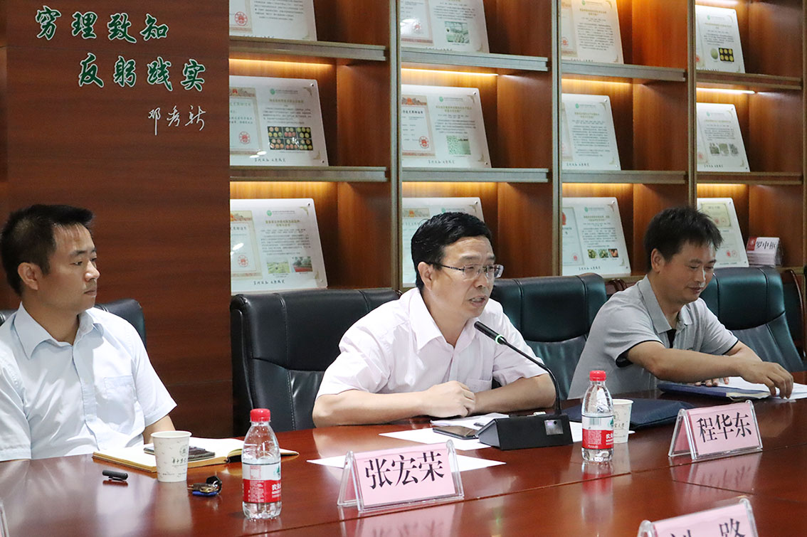 程运江院长从教学培养、学科建设、成果转化应用成就等方面介绍学院情况。程华东书记介绍我校对口荆门推行“乡村振兴荆楚行”相关工作的现状。宁国贵教授提出对荆门花卉行业发展的看法和建议。