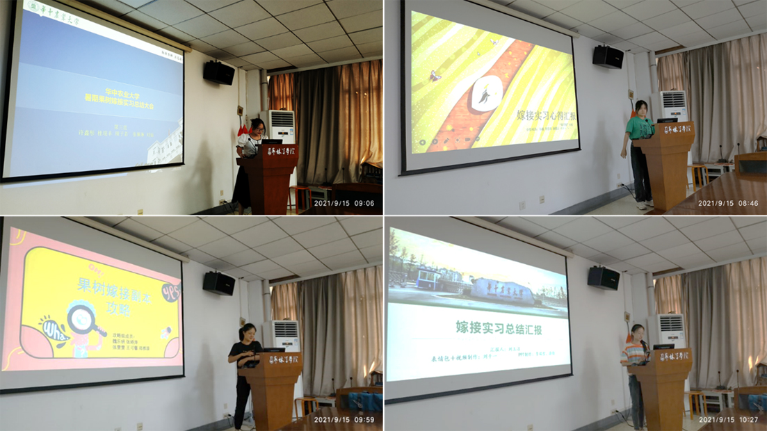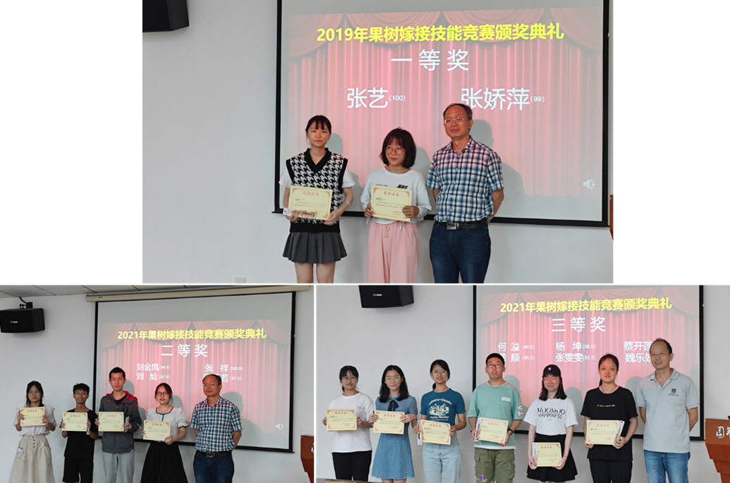 9月15日,2018级果树嫁接教学实习总结暨表彰会顺利召开。九个小组同学用优美的幻灯片和震撼的视频方式总结了为期十天的嫁接实习里所学到的果树品种识别、芽接和枝接等理论知识,分享了自己的心得体会和对未来的展望。刘千一同学制作的“王家卫风格”的视频“果样年华”,带领大家回顾了从磨刀、削芽到田间实战这段有苦有甜的日子。同学们纷纷感慨,通过本次实习,不仅掌握了相关理论知识和嫁接技术,更重要的是磨练了个人意志品质,这使我们能够更加自信地面对未来工作和科研道路上的各种挑战。小组汇报结束后,刘永忠老师和郭大勇老师为嫁接竞赛获奖同学颁奖,张艺和张娇萍获得一等奖,刘金凤等四位同学获得二等奖,何溢等六位同学分别获得三等奖。