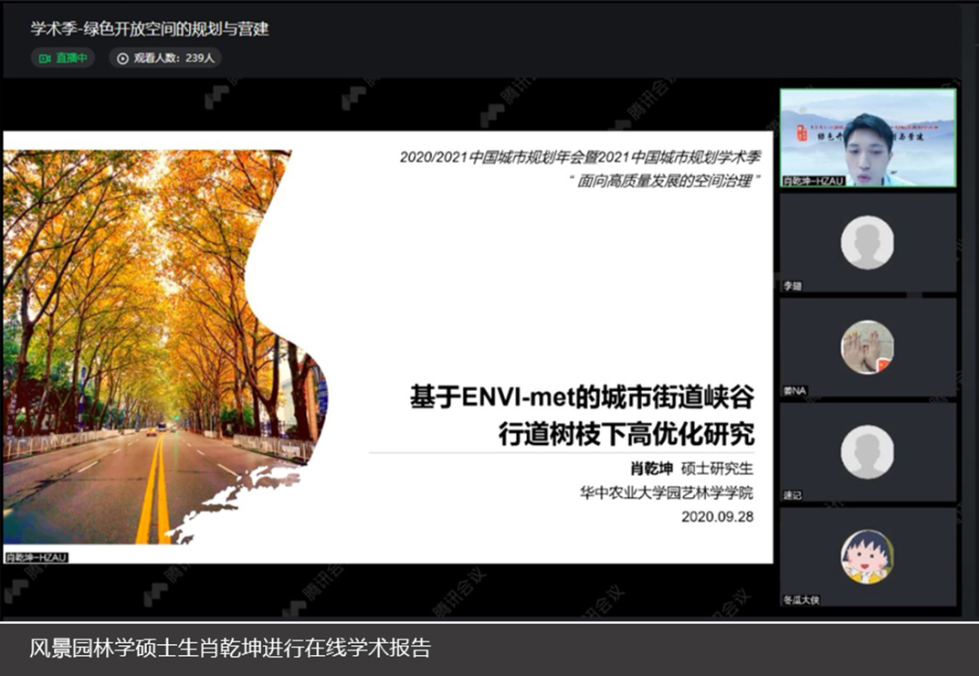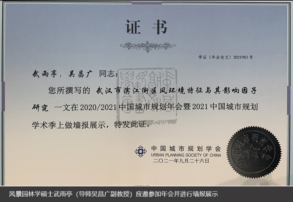 由中国城市规划学会、成都市人民政府主办的2020/2021中国城市规划年会暨2021中国城市规划学术季于2021年9月25-30日在成都召开,会议主题为“面向高质量发展的空间治理”。本届年会共举行了90场精彩的学术对话和特别对话,集中展示规划领域最新研究成果。学术季共收到来自全球的6875篇学术论文,其中434篇优秀论文在20个专题会场进行宣讲,824篇论文以墙报的方式在年会期间集中展示。51吃瓜网 3名风景园林学子应邀分别参加了线上学术报告和线下墙报展示。