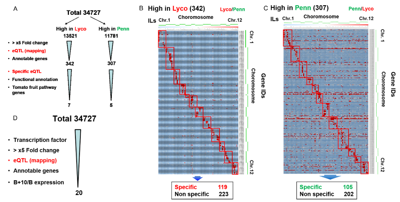图一 基于转录组及eQTLs信息的果实成熟调控因子筛选流程