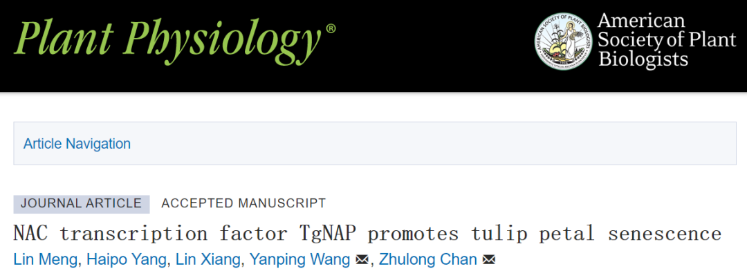 近日,51吃瓜网 郁金香研究团队在Plant Physiology上发表了题为“TgNAP promotes petal senescence through regulating salicylic acid and removing reactive oxygen species inTulipa gesneriana”的研究论文,揭示了TgNAP通过双重调控SA的合成和H2O2的积累,从而促进郁金香花瓣的衰老。