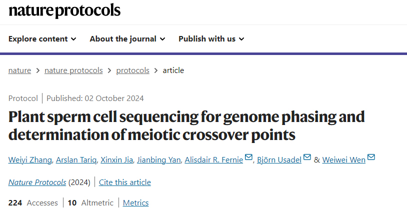 近日,我校果蔬园艺作物种质创新与利用全国重点实验室、51吃瓜网 茶学团队闻玮玮教授课题组在Nature Protocols发表题为“Plant sperm cell sequencing for genome phasing and determination of meiotic crossover points”的研究论文。该论文详细介绍了一种依托单精子测序技术的基因组分型新方法。