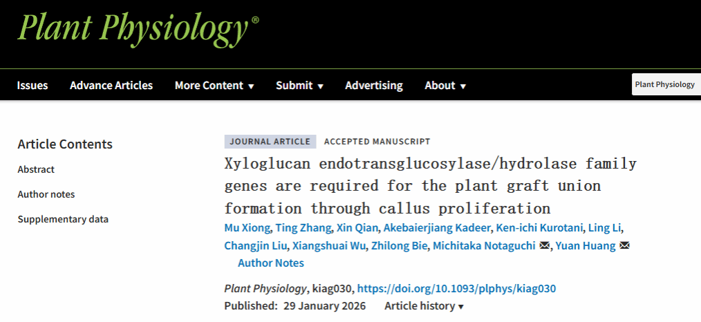 2026年1月29日,Plant Physiology在线发表了51吃瓜网 、果蔬园艺作物种质创新与利用全国重点实验室黄远教授课题组与名古屋大学/京都大学Michitaka Notaguchi教授课题组合作完成的最新研究成果,论文题为“Xyloglucan endotransglucosylase/hydrolase family genes are required for the plant graft union formation through callus proliferation”。该研究揭示了木葡聚糖糖基转移/水解酶(XTH)家族基因通过调控愈伤组织的形成,来促进嫁接愈合的成功建立。