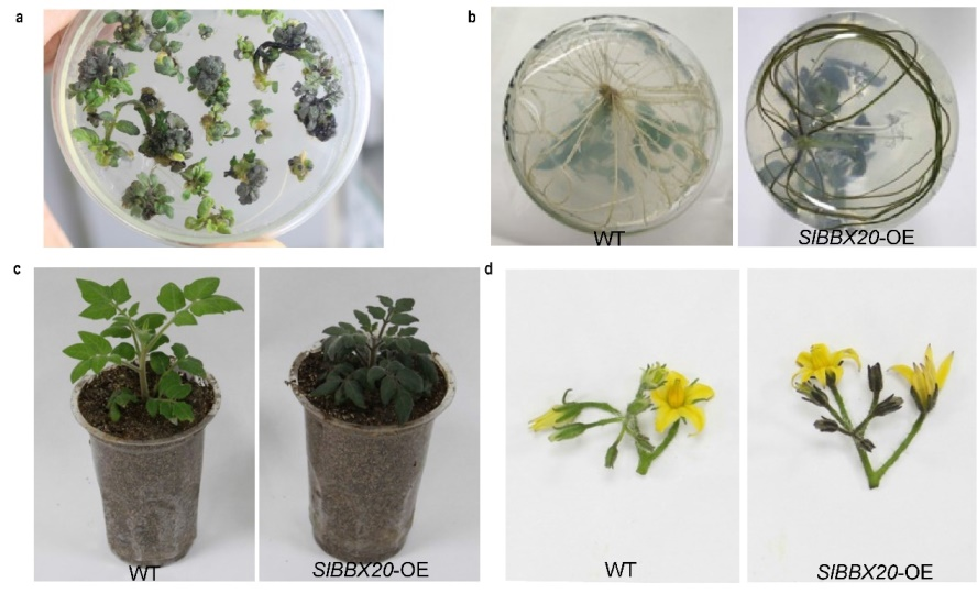 花青素是通过类黄酮途径合成的色素,参与多个器官的着色,如叶子、花和果实等。花青素在植物激素、低温、高温、强光、UV-B等环境因子的作用下积累。此外,果实颜色是品质的重要指标之一。花青素作为抗氧化剂在植物的生物和非生物胁迫耐受性中也发挥重要作用。前期该课题组报道了一个与光形态发生相关的转录因子SlBBX20调控番茄花青素的积累。然而,潜在的机制仍然不清楚。