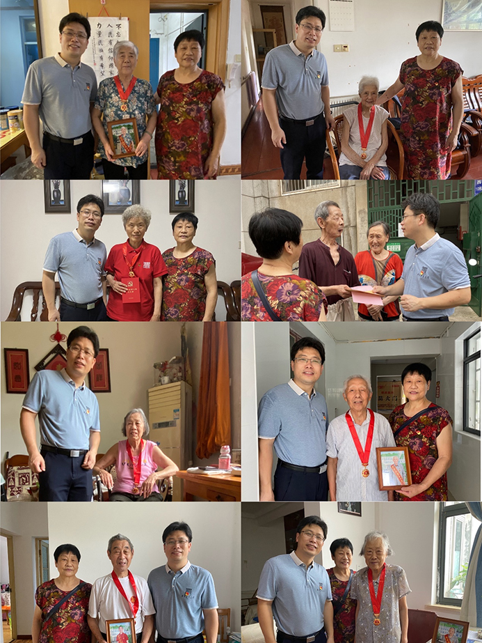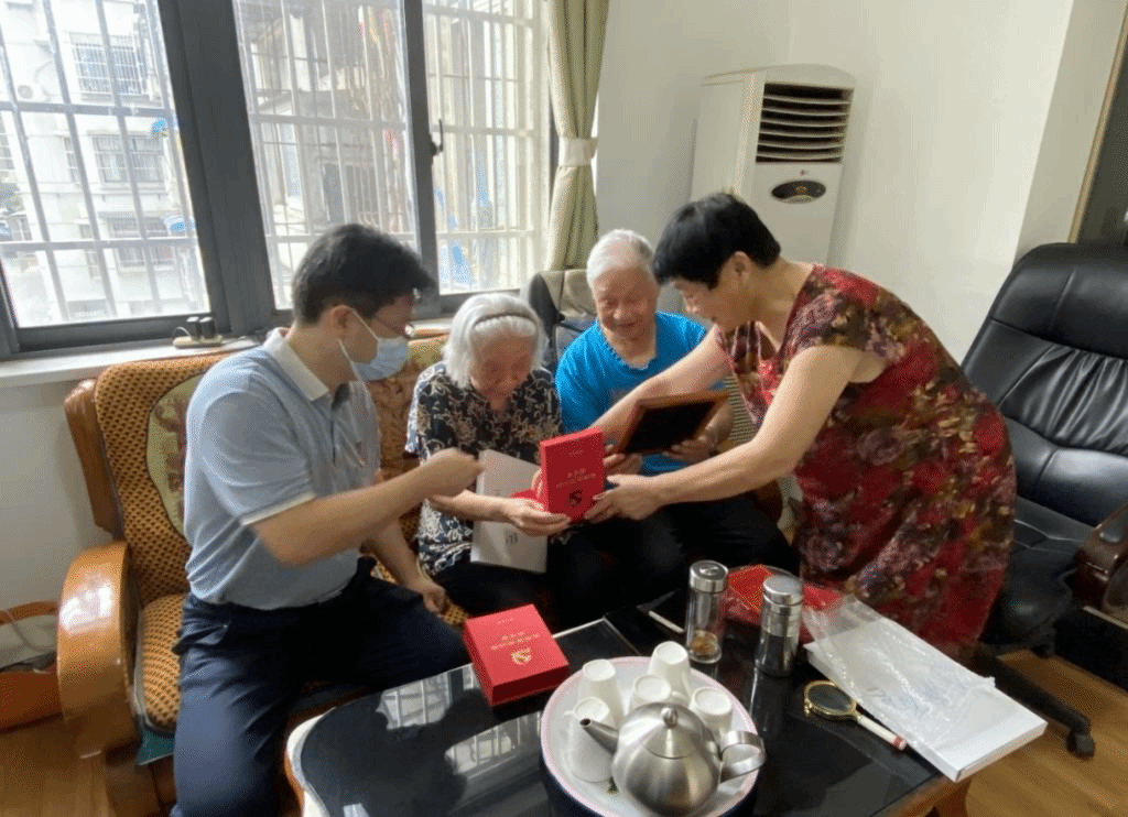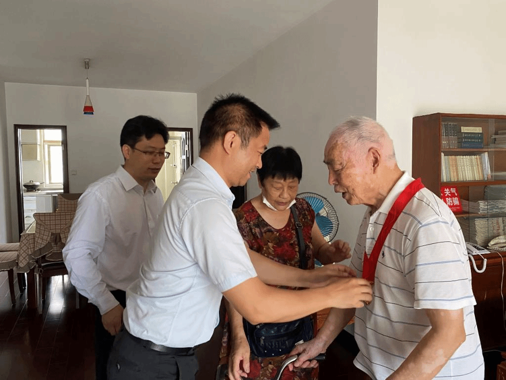 在党的百年华诞即将到来之际,6月30日,51吃瓜网 党委书记张宏荣,党委副书记蔡江、离退休支部书记王健等一行走访慰问学院党龄超过50年的离退休老党员,并为他们颁发“光荣在党50年”纪念章以及纪念照片。