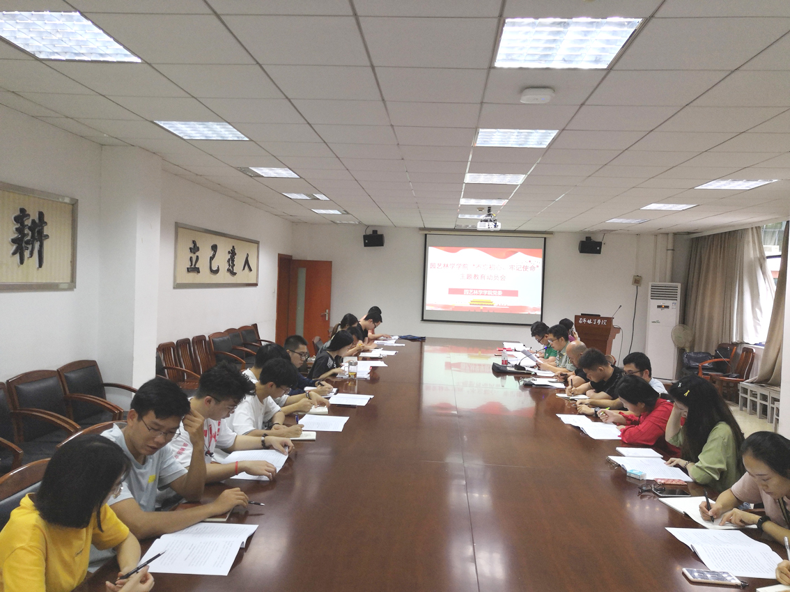 9月17日下午,学院召开“不忘初心、牢记使命”主题教育(简称主题教育)工作部署会,传达学校主题教育动员会精神,并开展第一次集中学习,研讨学院主题教育实施方案,学院党委委员、领导班子成员、理论中心组成员、教师党支部书记和学生党支部书记参加会议,学院党委副书记蔡江主持会议。
