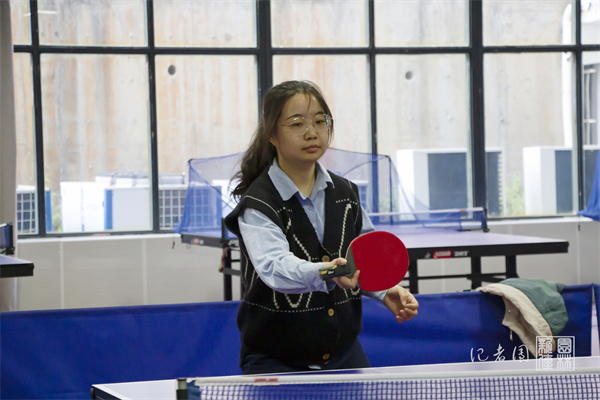 场上白色的乒乓球飞跃,赛事如火如荼地拉开帷幕。女单冠亚争夺战打响,乒乓球队队长吴成茵侧身半蹲俯身,膝盖弯曲,左手一个高抛球,腿、腰、臂三者协调发力,触球瞬间手腕内旋发力,再接上一个反手推拨球,把握进攻优势。她时而轻吊一个“近小球”,时而拉一个“端线长球”,时而猛扣一板。最终,以3:0的佳绩一举夺得桂冠。“我自己从小就对乒乓球很感兴趣,大学里在乒乓球队也认识了许多志同道合的朋友。”吴成茵笑着说。对于即将到来的狮子山杯,她表示希望能够代表园林院出战并取得一个好的名次。