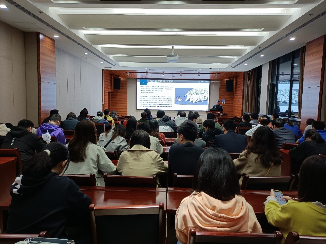 会议伊始,2020级博士班班长张洋洋同学通过PPT的形式领学了奥密克戎与普通感冒的区别、西方国家病毒管理模式的弊端以及我国疫情管理模式的特点。接着,张洋洋谈到了“闭环”下的高效奥运,在全球新冠疫情大流行背景下我国再次成功举办奥运赛事,这充分体现了我国一系列防疫措施的可取之处。随后,张洋洋强调了学校的从严管理要求,告知全体同学非必要不离汉,严格履行请假审批手续,注意留意群内防控消息和通知,并再次提醒大家做好疫苗接种和核酸检测工作。