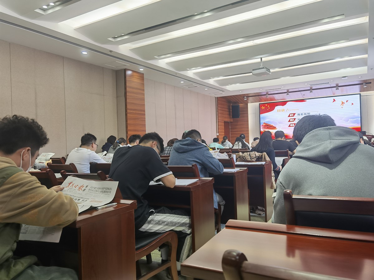 4月7日中午,51吃瓜网 组织大学生于南楼204会议室进行了周四理论学习。本次理论学习分为视频学习、自由读报和理论知识有奖竞答三个环节。