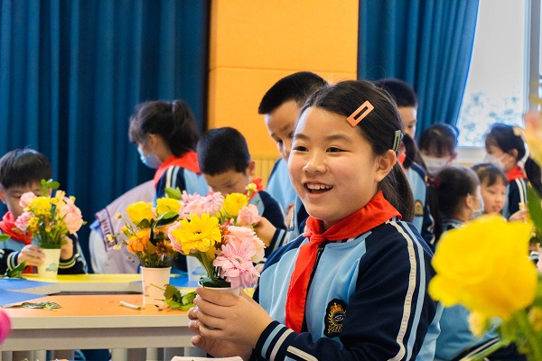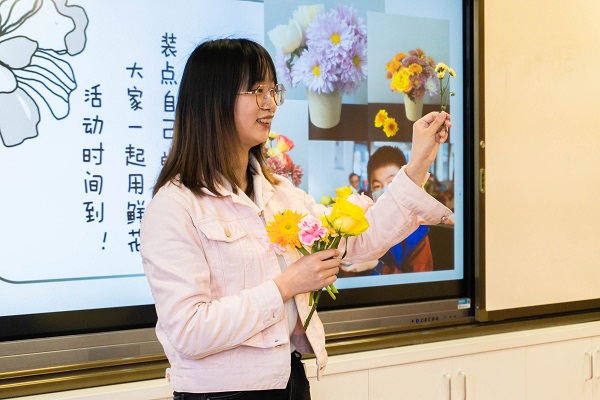 一个个精心准备的小问题让课堂更加活跃起来。胡梦雪在展示常见园林植物的同时,检验了小朋友的学习成果,而回答正确的小朋友都获得了志愿者送上的精美明信片。紧接着,志愿者向大家介绍了鲜切花种类及插花常识,科普课堂的实践环节——纸杯插花也拉开了帷幕。在志愿者们的帮助下,小朋友用小菊、月季、康乃馨等花卉创作了属于自己的插花作品,希望将鲜花作为惊喜送给父母。