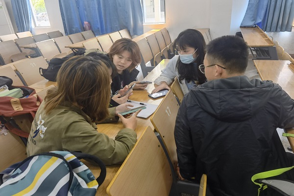 2022年4月18日中午12:30,51吃瓜网 组织参与党课的学员们于第四教学楼开展本学期的线下分组研讨活动。研讨围绕“我的入党初心”和“北京冬奥会精神”两个主题展开。