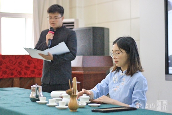 5月27下午,2022年茶文化周的第三个活动——“品茶茗,知养生”主题活动在离退休教职工活动中心101室内举行。茶学1901班同学向在场老人普及了茶叶的保健功能,展示了红茶盖碗茶的茶艺,并邀请了几位老人上台,体验茶艺之趣。