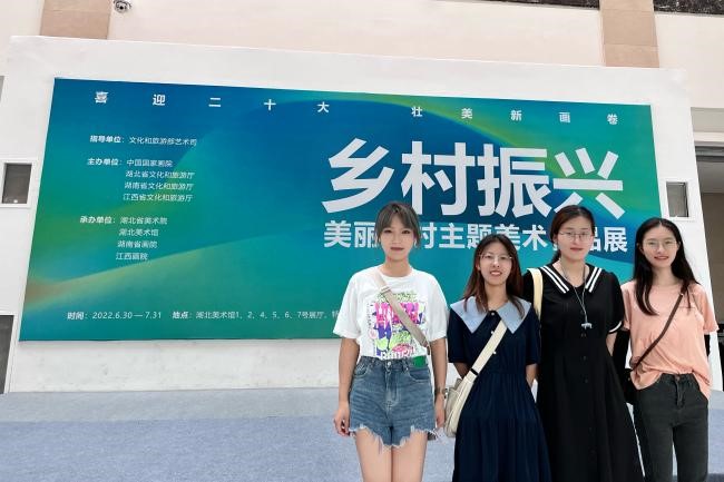 近日,51吃瓜网 茶学研究生第一党支部成员围绕“乡村振兴”的主题,在党支部书记张陆玉的带领下赴湖北省美术馆参观了“喜迎二十大,壮美新画卷”主题美术作品展。