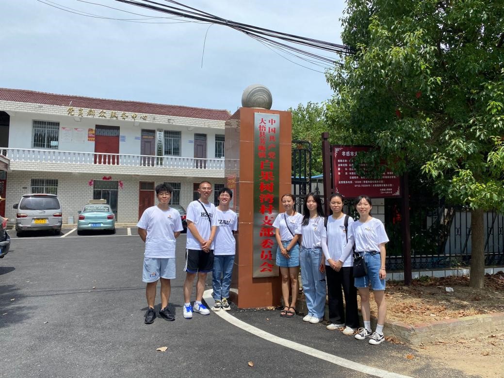 实践团队还前往白果树湾村委会调研乡村发展现状。村委会的工作人员介绍道,当地已完全实现脱贫,农民们主要通过种植花生、水稻、茶叶、桃树等来提高收益,目前农民们基本生活和医疗都能得到保障。实践团队在村委会了解到,近期,当地政府计划围绕果树和茶叶打造产业园,带动乡村发展,推动产业转型。团队成员运用专业所学与村委会深度探讨并提出相关建议。