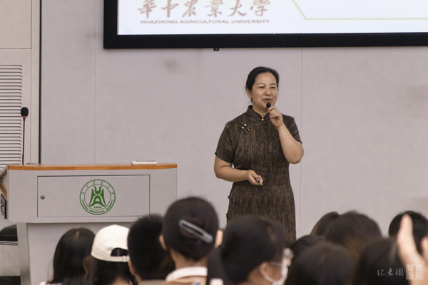 齐迎春从报名时间、比赛形式、初决赛时间、赛事地点等方面详细介绍了六种竞赛,包括全国大学生生命学科竞赛、湖北省大学生物学实验技能竞赛、全国青年科普创新实验暨作品大赛、湖北省微生物培养皿艺术设计大赛、湖北省大学生酒体设计大赛和国际基因工程机器大赛。其中,齐迎春着重提到教育部认可的57项全国大学生学科竞赛之一——全国大学生生命科学竞赛,并以通俗易懂的语言给大家讲述了科学探究类和创新创业类的相关获奖案例。介绍到湖北省微生物培养皿艺术设计大赛时,齐迎春特别指出此竞赛是由我校和湖北省科学技术协会组织,同时分享了已有的微生物培养皿艺术设计图,介绍了培养皿设计制作时采用的方法等。谈及生物科学与艺术的交融之美,齐迎春还与同学们分享了试管花卉、科学与艺术的创见等。她坦言:“希望同学们能踊跃参加竞赛,彼此欣赏,互帮互助,共同成长。”
