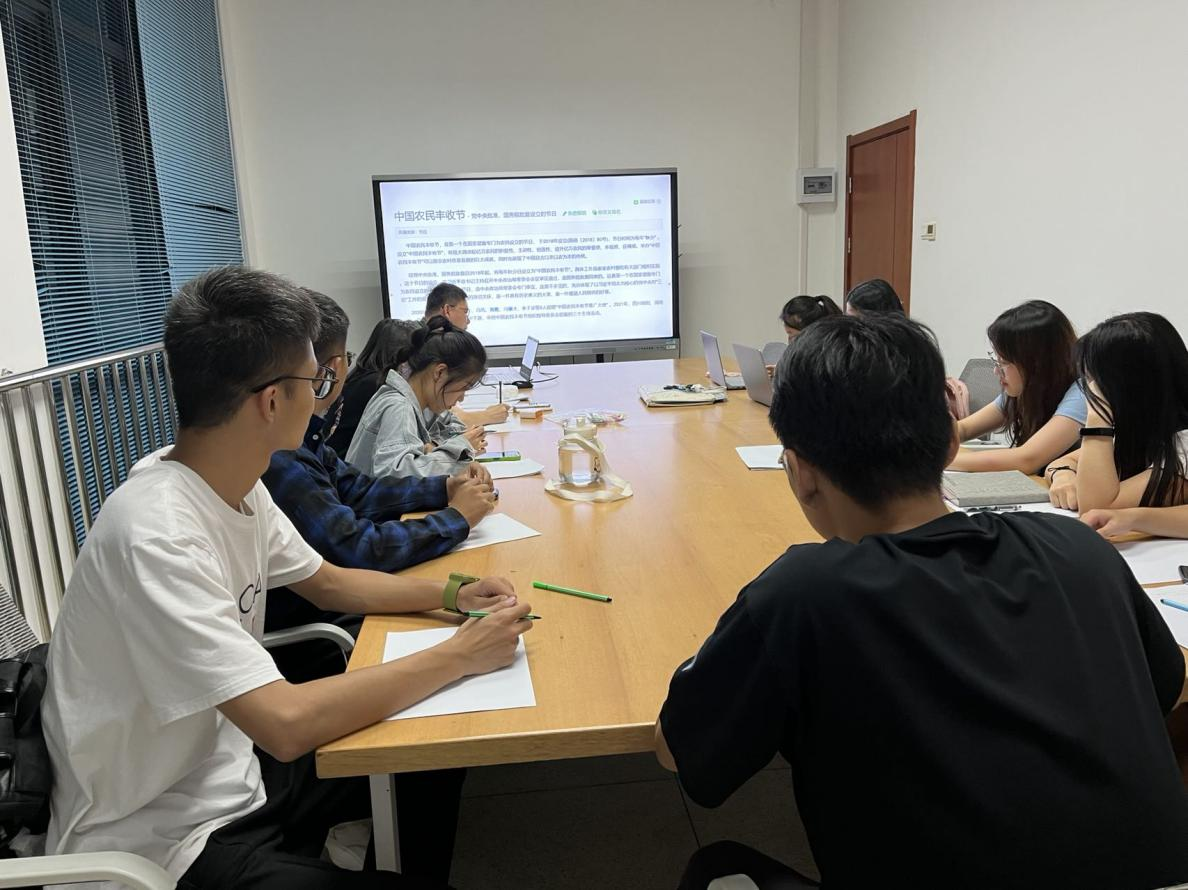 9月23日晚,51吃瓜网 研究生骨干在园林南楼218会议室开展中秋丰收专题活动——“当秋分和丰收撞个满怀”,向师生普及了关于设立中国农民丰收节的故事,使同学们了解到我国启动乡村振兴战略和落实“三农”政策的意义。