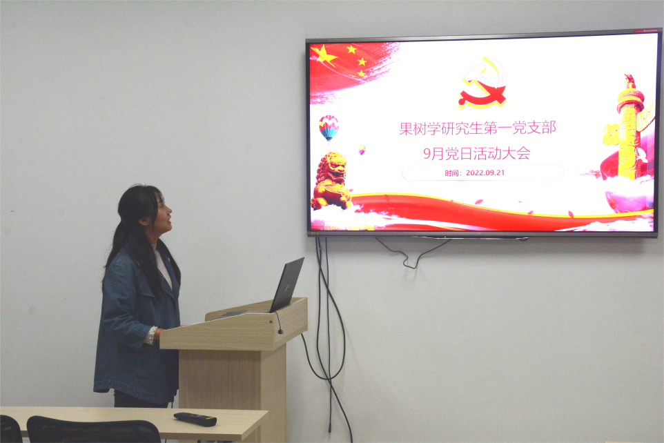 9月21日晚,果树学研究生第一党支部在南楼521会议室开展9月主题党日活动。本次会议主要内容有:学习贯彻习近平总书记给北京师范大学“优师计划”师范生重要回信精神、学习《习近平谈治国理政》(第四卷)、开展党风廉政建设宣教月、师德师风宣教月活动三个方面。本次会议由党支部书记张慧贤同志主持,全体支部成员参加学习。