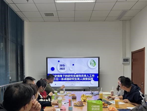研讨交流会伊始,51吃瓜网 研究生辅导员肖晗以“历史视角下的研究生辅导员的育人工作——三位一体卓越研究生育人探索”为题,从专业+思想政治融合育人、心理+职业生涯协同育人模式以及故事+榜样事迹朋辈育人三个方面分享了学院研究生学生工作情况。从连续4年坚持开展的“青春告白祖国”特色系列活动,到研究生班级心理委员体系建设再到与榜样对话优秀人物事迹宣传报道,学院各组织一直聚焦立德树人、服务学院师生、搭建学术平台、传播校本文化、讲好园林故事。随后,三院针对评优评先、党团日活动开展、新闻宣传、就业指导、学术科创以及后续合作活动等工作进行讨论、分享经验与意见。