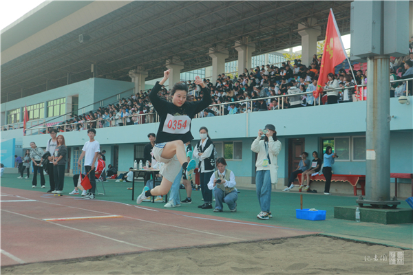 10月22日下午,在第二运动场举行的校运会女子三级跳远决赛中,园林果树专业硕士生甘珊珊和景园2202班周敏以过硬实力,分别斩获第一名和第四名。