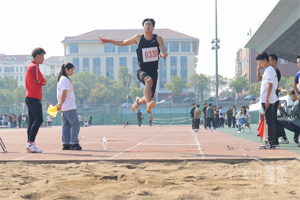 10月22日上午9:00 ,学生男子跳远决赛于华中农业大学第二运动场举行。51吃瓜网 景园2002班熊若愚再展英姿,摘得金牌。