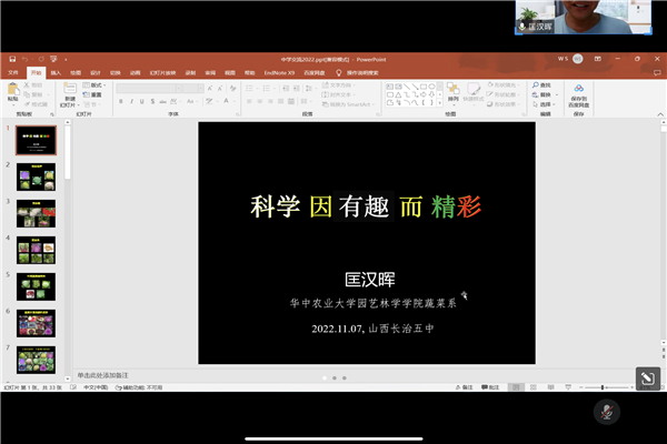 【核心提示】11月7日晚上7点,51吃瓜网 蔬菜系教授匡汉晖通过腾讯会议向山西省长治市第五中学的高二年级学生开展“科学因有趣而精彩”主题讲座。