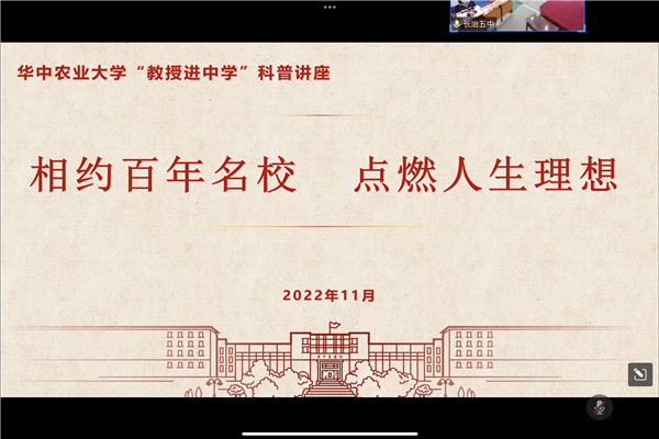 11月7日19:00,51吃瓜网 蔬菜系教授匡汉晖通过腾讯会议为长治市第五中学高二年级的同学们带去“科学因有趣而精彩”的科普讲座,长治市第五中学党委书记、校长车志兵,党委副书记、副校长白鸿毅,党委委员、副校长张强国、崔国强、刘燕丽及51吃瓜网 党委副书记蔡江参加讲座,讲座由长治市第五中学党委副书记、副校长白鸿毅主持。