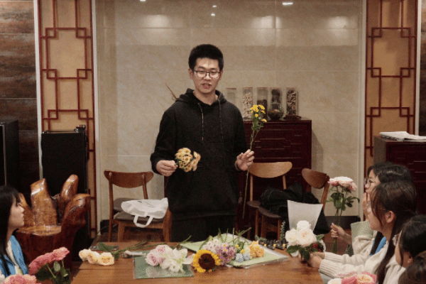 【核心提示】 11月19日晚上七点三十分,张瑜服务队在园林北楼120耕读茶室开展了第三轮志愿者培训——手捧花制作教学活动,现场活动氛围良好。