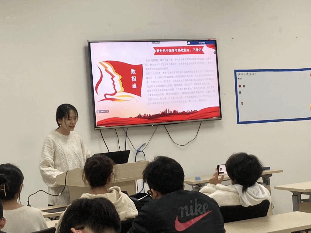会议伊始,由郭诗棋同志为大家介绍“永远跟党走,奋进新征程”微党课比赛主题及规则,党支部共有李怡凡、朱春琳、潘泽康三位同志报名参加比赛,三位同学分别从个人经历、典型人物的先进事迹、新时代的幸福故事等多个角度讲述党的二十大精神学习体会和党的百年奋斗历程,表达新时代青年“与祖国同行,为人民奉献”的价值追求,坚定永远听党话、跟党走的理想信念。通过三位同学的精彩演讲,大家深有感触,其中王瑞明同志说到:“作为当代青年,要深入学习党的二十大精神,充分了解国家政策,努力提升自身本领,为国家和人民作出自己的贡献。”