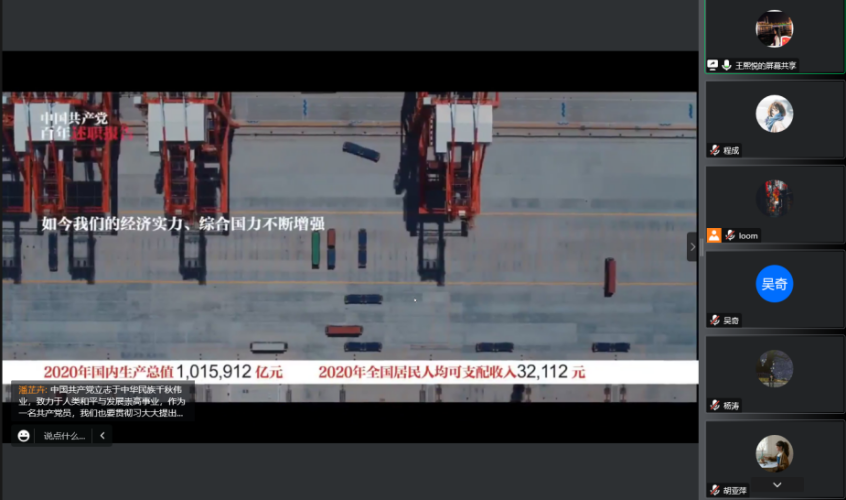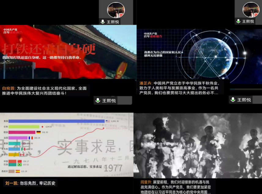 在观看了回顾中国共产党百年历史的视频之后,组织委员马跃文说道:“作为一名新时代研究生,我会将学习贯彻二十大报告作为当前乃至今后一个时期的首要任务,高度重视,认真学习深刻领会,扎实践行。”刘一凯认为,民族弱则民弱,民族强则民强。不要忘了“落后就要挨打”的历史教训。我们要把使命和责任凝聚在脑中,把握在手中,把强烈的爱国热情化为强国的巨大力量。
