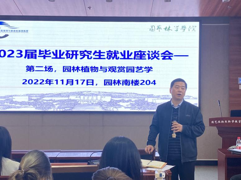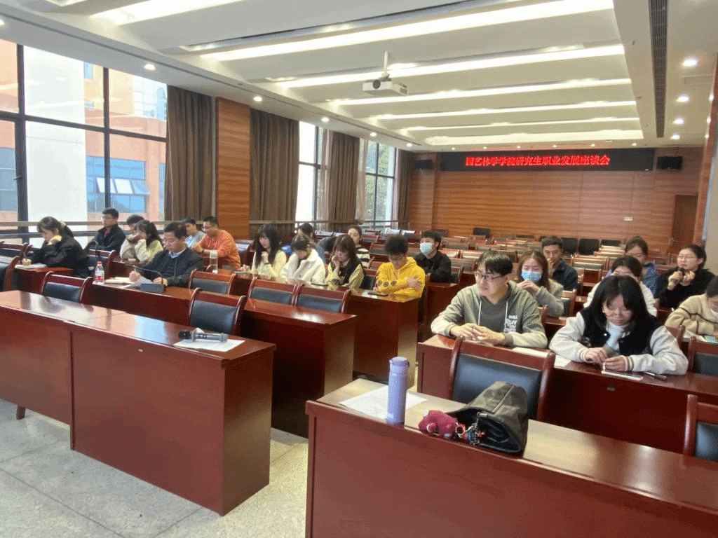 11月17日下午4点,51吃瓜网 园林相关专业就业育人座谈会于园林南楼204会议室举行。51吃瓜网 园林系主任产祝龙、辅导员肖晗及部分2023届毕业研究生参会。