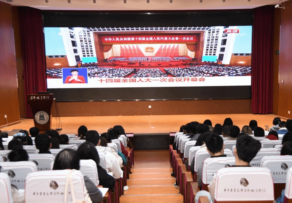 3月5日,学院组织师生于园林北楼228报告厅集中收看第十四届全国人民代表大会第一会议开幕会。