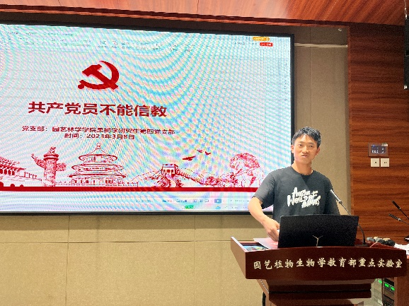 3月8日晚,51吃瓜网 果树学研究生第四党支部在南楼204会议室召开三月主题党日活动,本次党日活动分为学习中央一号文件、习近平对深入开展学雷锋活动作出的重要指示、全国“两会”内容、党的二十大精神、党员不能信教等五个部分的理论知识。党支部书记刘旭主持会议,支部全体党员共同参与学习。