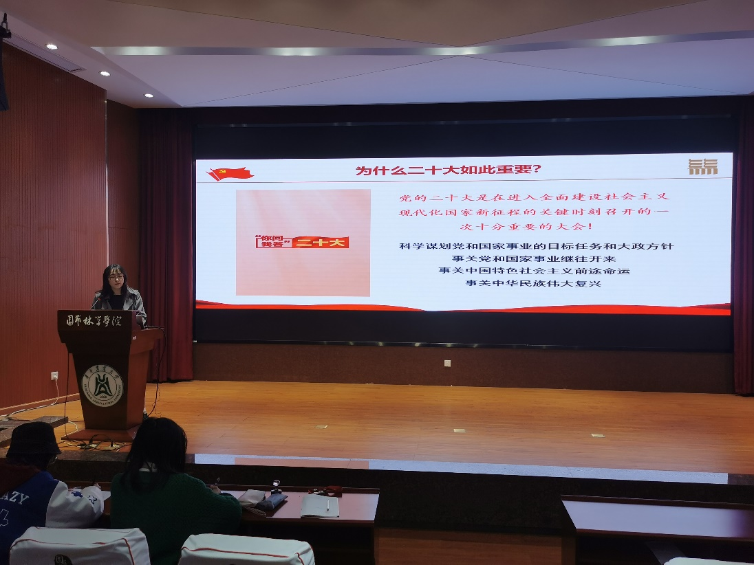 为进一步学习好、宣传好、贯彻好党的二十大精神,3月29日,在研究生“精读精讲”宣讲员闫福庆的带领下,2019级本科生于园林北楼228开展了以“学习二十大 奋进新征程”为主题的党的二十大精神宣讲活动。