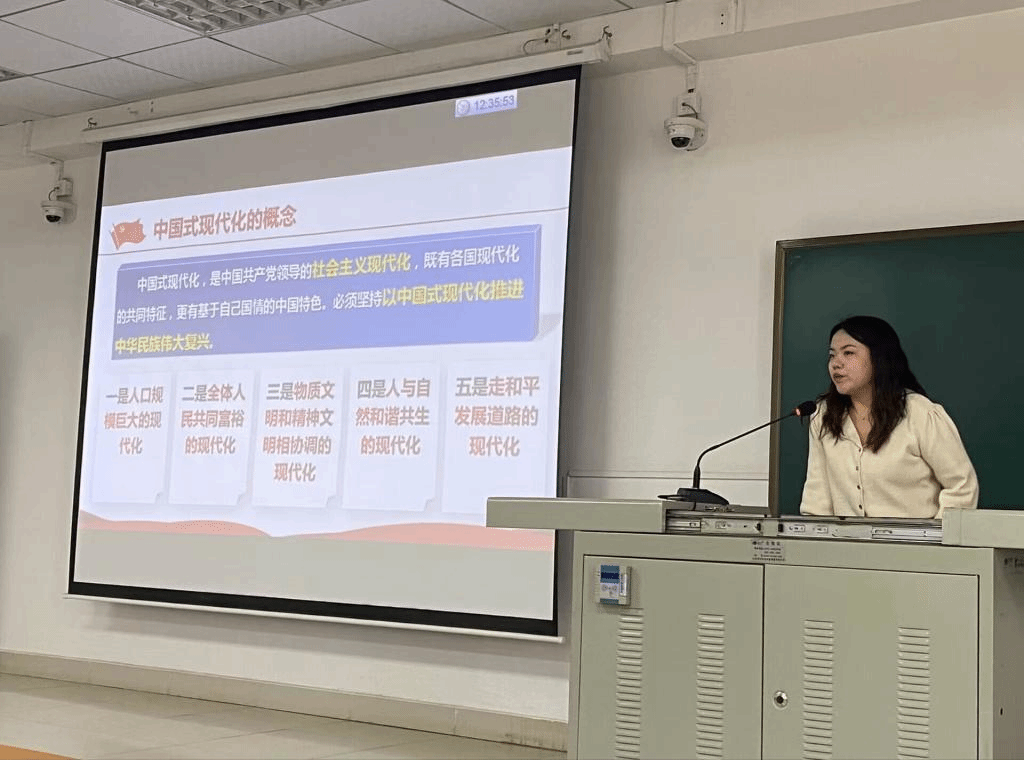 宣讲员带领大家了解学习了中国式现代化的概念与重要性,将中国式现代化与西方的现代化进行比较,谈到中国式现代化是人口规模巨大的现代化、全体人民共同富裕的现代化、物质文明和精神文明相协调的现代化、人与自然和谐共生的现代化以及走和平发展道路的现代化。十八洞村等实际案例更是表明必须坚持